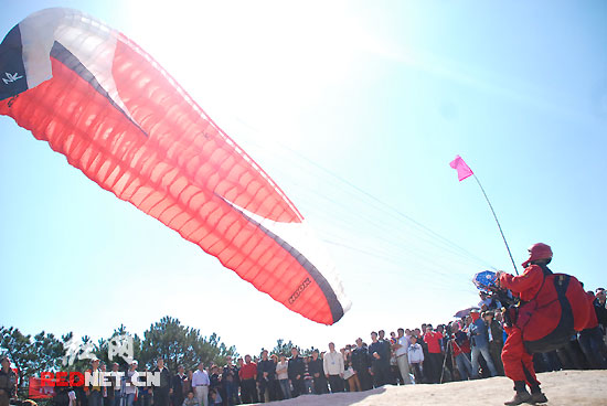 今日上午,由幕阜山国家森林公园主办的“滑翔飞行节”在景区举行。本次活动吸引了来自香港、台湾和韩国等地区和国家的60多名滑翔伞运动高手的参与。“幕阜山海拔高、落差大,降落地十分开阔,这从滑翔伞运动的技术需求上来说都是极其难得的,此外,幕阜山风景非常优美,在这里进行飞行可以说是一种享受”,来自深圳一家飞行俱乐部的阿强教练介绍说。