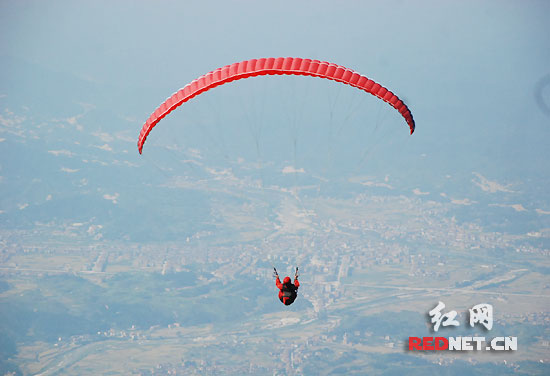 红网平江10月5日讯(记者张勇)有着八年专业滑翔伞运动经历的韩国人吴美焕站在海拔1605米的平江幕阜山一尖峰,发出了由衷赞叹:在亚洲、乃至全世界真的很难找到这样风景优美的滑翔伞运动基地。随着“滑翔飞行节”的举办,幕阜山将打造成为全国顶级滑翔伞运动基地,吸引更多像吴美焕这样勇敢者前来挑战。