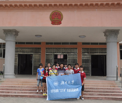 本网讯(牛倩如 张靖 刘林萍) 7月11日,湖南大学新闻传播与影视艺术学院“三下乡”社会实践志愿服务团,走进我国的“将军之乡”——平江县长寿镇,开展了围绕建党九十周年主题的“三下乡”活动。
