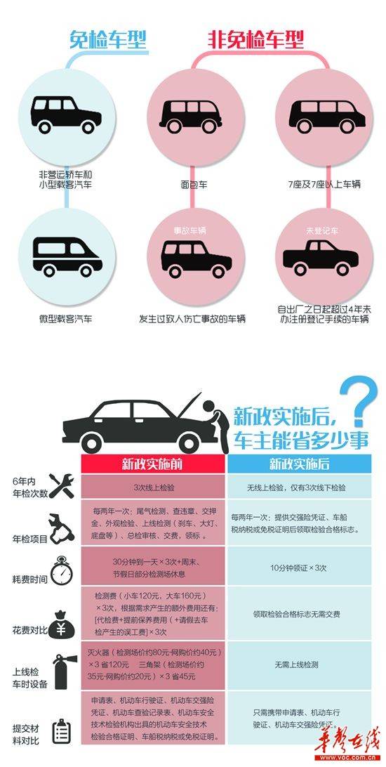 车辆免检新政即将实施,如车主能按新政政策享受全部6年3次免检,除了省事,还能省下共约3500元。新政引起众多车主关注,本期车生活,帮您吃透免检新政。