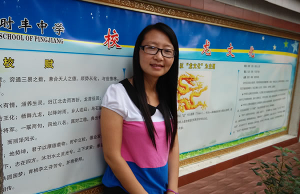 她,是一朵向阳花,盛开在革命老区平江县伍市镇这片红色的土地上。自1998年参加工作以来,无论遇到病痛、坎坷或者是其他磨难,她都始终如一地选择了向阳而开。也许她是不起眼的,不到1米6的个子,加上很显单瘦的身材,给人的第一印象——她是不美的,但是只要走进她的生活,走近她的学生和同行,你听到的绝对是啧啧称赞的声音——她是美丽的,美得朴实,美得坚毅,美得让人肃然起敬。