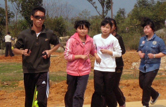 “还好啦!我已经习惯了,每天早晨5点50分起床,然后带领体训队的孩子们训练。接着跑步去早餐,准备一天的工作。晚上有时还要照顾寄宿生到凌晨两点。也正因为如此,我大学毕业后体重从来没有超过一百斤。嘿嘿,不过我一定要睡午觉。”
