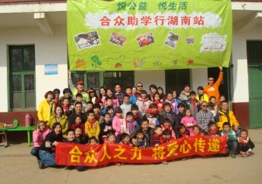 1月18日,湖南省“合众公益助学俱乐部”组织来自长沙、湘潭、株州等地的30个家庭的家长和孩子,来到我县长寿镇杨泗小学开展爱心助学联谊活动。30个爱心家庭为杨泗小学的14位贫困学生捐资10000元,还送来衣服、食品、玩具和学习用品,并与该校师生开展了唱歌、游戏等有益活动。图为“爱心家庭”成员与受助学生合影。