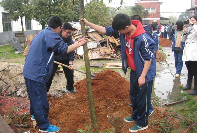 “来,你们俩扶桂花树,我来填土。”“谢谢叔叔、阿姨的资助,我会努力学习的。”3月23日,中国邮政储蓄银行湖南省分行和长沙市南雅中学1320班家长委员会共32名志愿者,带领15名省城初中生来到我县安定中学对该校部分品学兼优的贫困学子进行结对资助,并让城乡孩子们在校园里一同栽下了10棵友谊树。