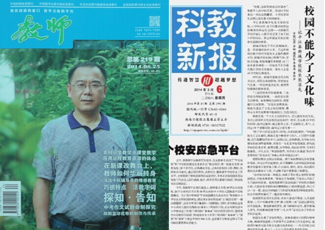“一个人的成长不是真正的成长,一群人的成长才是我的梦想!”他目前已成长为平江县“名片校长”,可仍不忘感恩平江,每年暑假都会将新锐的治校理念、求实的治校方略在县域校长聚会时巡讲。他说:“巡讲与实践是学校文化的试金石,它能够让我更加丰盈与成熟!”在他的文化魅力下,平江县新城学校一群人的教育梦想大面铺开。