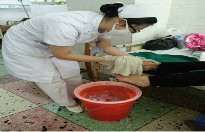 护士余新奇为摔伤的爷爷清理泥巴