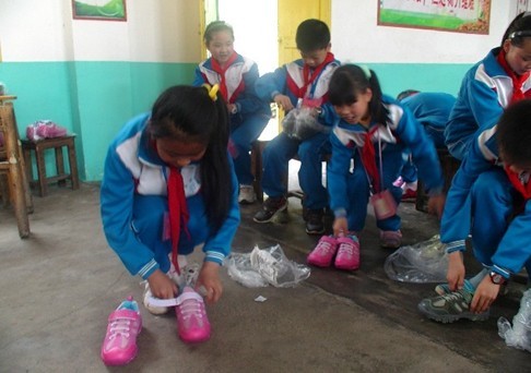 孩子们穿上新鞋子个个喜笑颜开