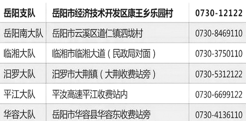 岳阳境内高速服务网点名单: