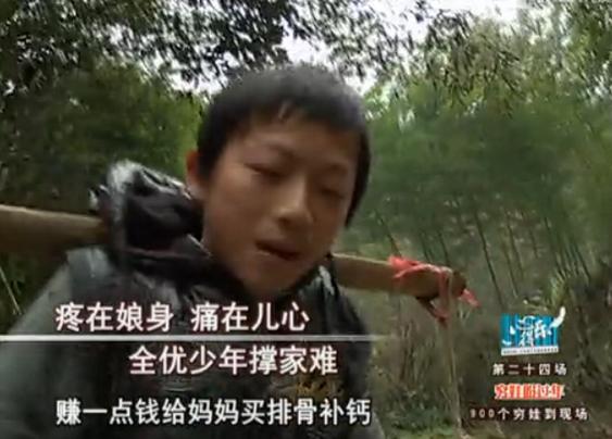 从东山挑来的山泉水行走10多里只为挣点钱给妈妈买排骨补钙(视频截图)