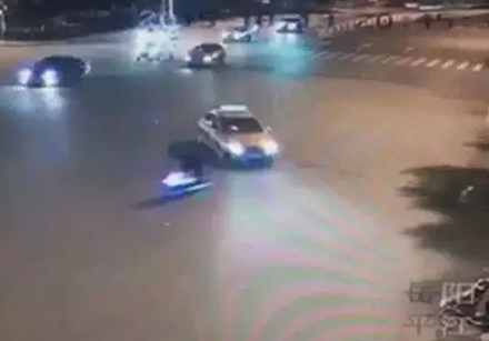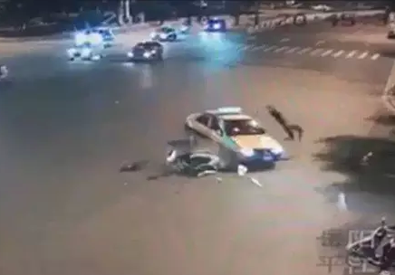 根据监控视频显示,当天晚上8点45分,路口红灯已亮起,一辆摩托车高速闯过红灯,径直撞上一辆正在左转的的士,在巨大惯性作用下,摩托车驾驶员被撞得飞至高空摔倒在地,当场昏迷。