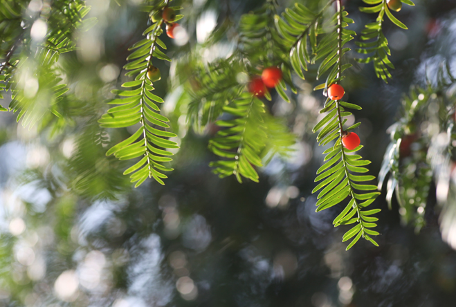 后来一位大嫂证实了我的猜测,还真是红豆杉。大嫂子随手摘了一把当零食吃了起来,并一定要我尝尝,放入口中,很甜很甜。记得家住南桥的天天说他们那里有棵很大很大的红豆杉树,便有很多人跑那里去摘红豆杉果实拿去浸酒,不用放多少便一瓶酒都能变甜,看来果真不假。
