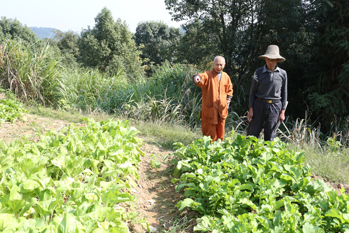 守庙的老娭毑此刻正在庙旁边的菜地里跟一位老乡述说自己的损失。这位老乡养的羊昨天跑她菜地里胡吃海吃,娭毑说赔就不用赔了,但得罚老乡给她做苦力,帮她把菜地全部浇一遍。老娭毑已经八十四,即便自己的羊没有吃坏娭毑的菜地估计这位老乡也会爽快答应这位老人家的要求,所以老乡二话没说便去灶房里提水桶。老乡刚转过身,娭毑很高兴地偷笑起来,神情活脱脱像个孩子。