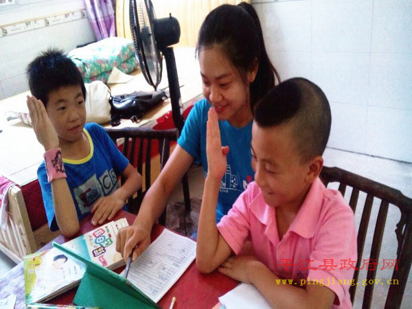 原来,他们是由香港中文大学杨师平、香港城市大学陈嘉荣、湖南师范大学陈心怡等10名大学生组成的关爱平江留守儿童志愿服务队,在湖南爱弥尔社工彭海燕的带领下,冒着酷暑深入每个留守儿童家庭,义务进行家庭作业辅导,并调查留守儿童生活状况。志愿者服务队以五个家庭为单位,召集周边留守儿童进行集中语文、数学、英语三门主要课程的“一对一”辅导,在课业辅导之余,大学生们也为小朋友带去了七巧板、大富翁、五子棋、国际象棋、3D拼图等益智游戏,以锻炼孩子们的动手动脑能力,开发创新思维。