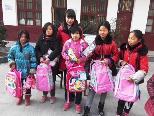 “感谢城里来的朱阿姨,是她圆了我的新书包梦想。”“看啊!这是我最需要的文具组合。”“2015年已经来了,我的新年第一个梦想也实现了,我好幸福啊!”最先领到新年爱心大礼包的六年级的胡学诚、李思琴、何牡丹、李波林同学开心地说道。
