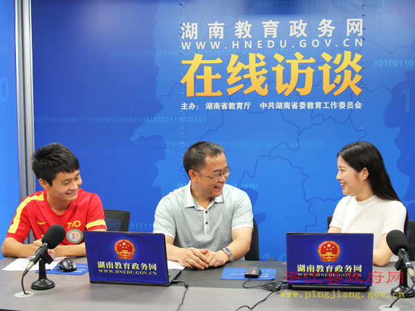 9月18日,岳阳平江县新城学校校长、书记熊准先和新城学校体育教研组长、校足球队教练唐郭如做客湖南教育政务网在线访谈频道,就广大网友关注的“山区小学校园足球”主题,进行互动交流,作了全面的经验介绍。
