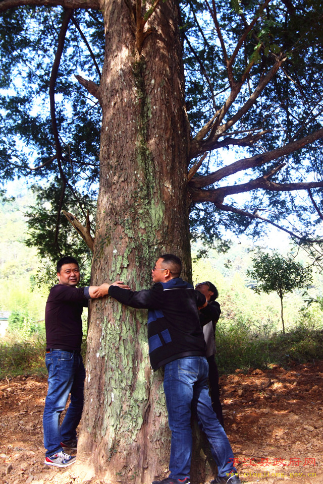 走进古树参天的原始丛林内,但见在别处山林难得一见的南方红豆杉在这里遍地都是,在这里,主干直径超过10厘米、高达20米的红豆杉随处可见,由于其生长特别缓慢,这些高大的红豆杉少则数十年、多则上百年,是名副其实的“长寿树”。在该乡汤段村我们见到了一株被称为“红豆杉王”的古树,高达30多米,需要3个人才合抱过来,当地的村民说这株红豆杉有上千年了。