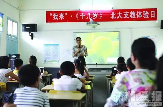 带领此次北大支教团的北京大学光华管理学院13级本科生岳鑫说,北大的学生近半数都在大学期间参加支教活动。