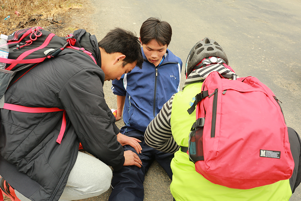 爱心志愿者们,在路边为毅行人员准备了路餐和饮水。