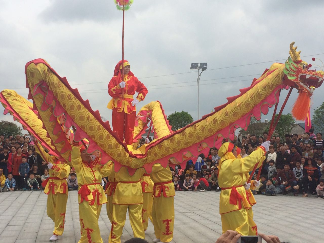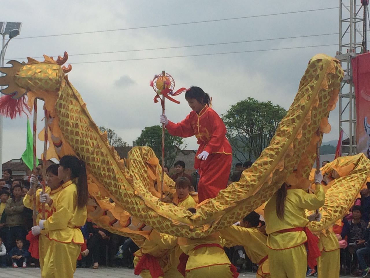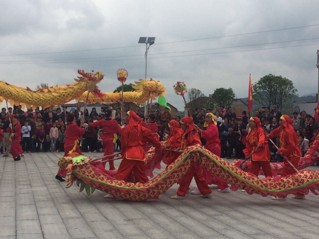 这可不是一般的玩龙,这天,来自南江各地龙队的近500舞龙队员先在伏羲广场的石雕像前举行集体祭祀活动。在暄天的鼓乐声中,供三牲,读祭文,拜先祖。接着,24条龙首尾相连,组成一条蔚为大观的巨龙,上下翻飞地穿镇而过,在昌江的文体广场群龙再次集中荟萃,进行规模空前的黄龙舞蹈大汇演。四面八方的人们闻讯起来的群众不断增多,给这次文化活动积聚了众多的人气。一些人甚至爬到邻近的屋顶上坐看表演。
