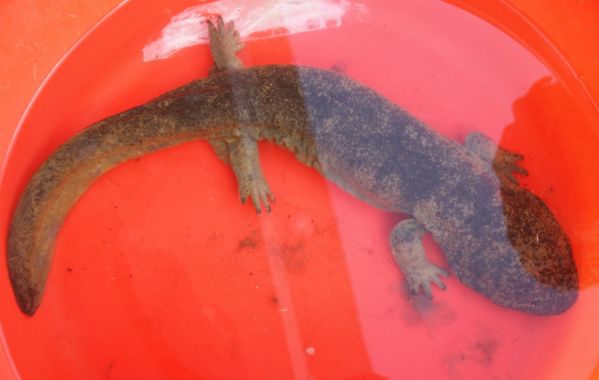 森保站和野生动物救助站人员对娃娃鱼进行检测