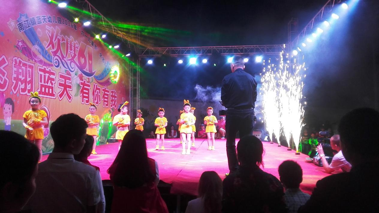 5月29日下午,平江县小城微爱志愿者协会一行人约40名义工早早地来到了南江镇蓝天幼儿园。到达现场后,身着红色义工服的志愿者们,各自忙着协助主办方邹兴园长布置晚会现场。七点三十分,蓝天艺术幼儿园庆祝2016年“六一”儿童节汇报演出晚会正式拉开了帷幕。南江学区相关领导及村委负责人到场祝贺或致辞。在大班孩子精彩的开场舞《踩踩踩》声中,一个接一个热情、浪漫、欢乐、喜庆的舞蹈仿佛把大家带回了过去七彩的童年。