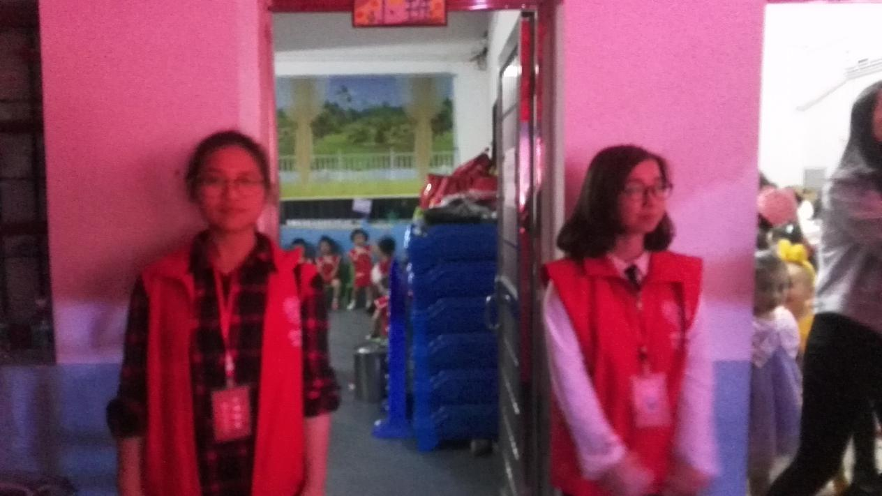 在晚会进行的过程中,小城微爱志愿者们自始至终和小朋友们在一起。哪里现场有需要,哪里就会出现志愿者们熟悉的身影和热情的服务。来自上坪小学的王庄青老师和福隆酒店的员工徐斌斌两名志愿者,为安全护送孩子们上下舞台长时间保持着微笑服务;在准备室服务的杨荃、陈春燕,以周到、暖心的服务赢得了老师和家长们的称赞;男志愿者们主要是负责安全保卫和人员疏导工作,王雄武、邹梅松等几人守卫在进出通道,保证了晚会的顺利进行,还有默默无闻地守卫在操场西北角小池塘边的何定仁等义工,忍受着蚊虫叮咬……而更令人感动的是志愿者们在晚会结束后还主动承担了清扫垃圾的任务。