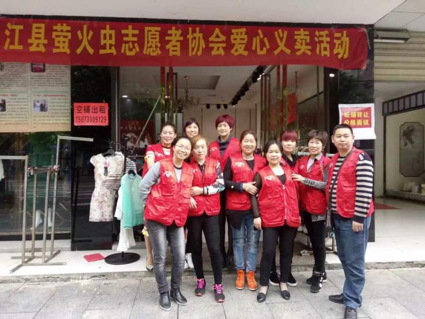 据萤火虫志愿团负责人陈海陶介绍,该团成立于2012年10月,最初只有7个人,到现在发展成为来自教师、医生、商人、公务员等各行业的83人,年龄在15到40岁之间。“萤火虫”们虽然只能发出微弱的星光,但是,他们长期以来坚持不懈的努力和乐于助人的追求已经在该地散发出了巨大的光芒,造成了较大的影响,他们在助学的路上成功挽回了许许多多失学儿童,救助了一个有一个贫困家庭,让他们能继续读书,用学业回报社会,4年来,萤火虫义卖活动举办了数次,所得收入都捐助了贫困学子们,定期看望孤寡老人,给他们带去生活慰问品,总价值都能以十万计了,虫子虽小,但却能唱响主旋律,弘扬正能量。由于他们长期以来的善举,对社会的良好影响,县委、县政府曾授予他们“年度十佳学雷锋志愿者“荣誉称号。