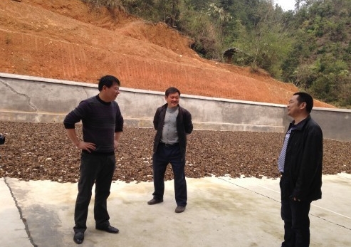 (2014年4月叶剑芝(右一)查看南桥乡危房改造安置点)