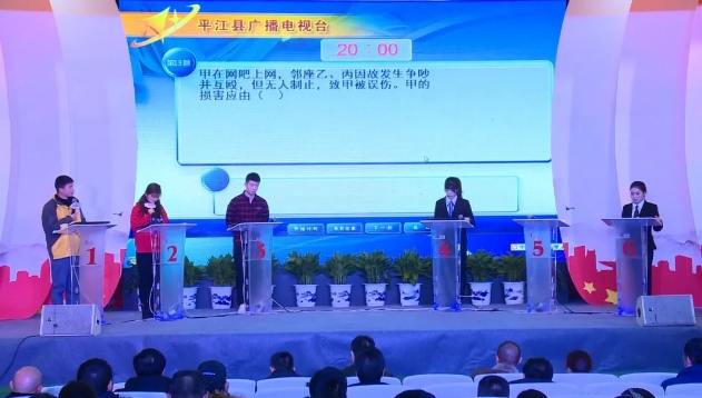 1月18日,《与法同行》2018年度总决赛举行,来自检察院、卫计局、公路和建设养护中心以及乡镇基层等6个在年度突围赛突围的战队参赛,争夺“冠军之夜”的万元普法现金大奖。最终,检察院战队过关斩将,一举摘得2018年度总决赛冠军。县委常委、政法委书记周虎光,副县长、公安局长姜伟南及公检法司“四长”、政法战线相关单位负责人现场观看了比赛。
