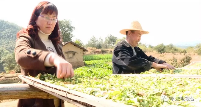 余友君介绍:根据他们个人的爱好,以及他们的实际情况进行帮扶。比如村民种了多余的菜,要他们在保证质量的前提下,组织我们单位的员工、亲朋好友,在微信群里面帮他们推销。现在,他们都已经形成习惯,知道把它变成现金了。那些青菜、干菜、辣椒、干豆角、红薯粉丝都做成产品,提到集市上卖,有一些就拿到石牛寨景区去卖。