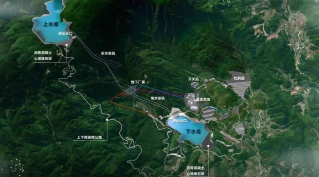 平江抽水蓄能电站项目位于福寿山镇百福村,占地4642亩,总装机140万千瓦,安装4台单机容量35万千瓦可逆式水泵水轮发电机组,设计年抽水电量19.66亿千瓦时,设计年发电量14.74亿千瓦时。电站枢纽由上水库、下水库、输水系统和地下厂房系统组成总投资88亿元。项目建设分为主体工程、施工辅助工程、移民安置工程、环境保护工程四大部分,总工期72个月,预计2024年建成投运、2025年全部投产发电。