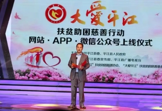 2017年1月,他倡议成立平江县“大爱平江”扶贫助困慈善协会(基金会),首次募集基金达1.2亿元,自己带头捐款300万元,结对帮扶贫困户77户。2019年,他再次当选“大爱平江”扶贫助困慈善协会(基金会)会长。