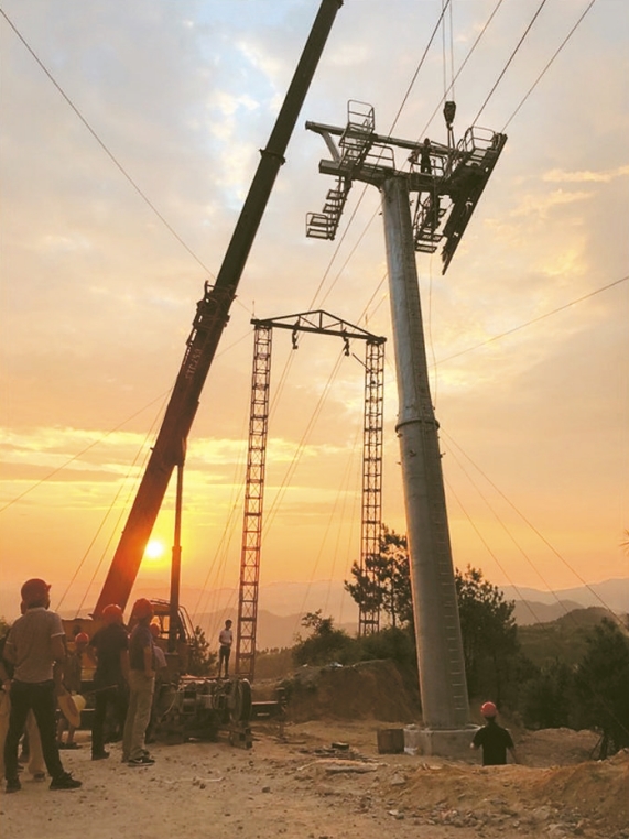 目前,天岳大索道除正在紧锣密鼓进行线路安装外,上下站房的建设也在全力推进。站房预计8月20日之前封顶,同步进入内部装修阶段,计划在两个月时间内完成安装。索道预计10月份进入调试阶段,待国家索检中心验收合格后投入正式运营,将实现3年快速建成的目标。