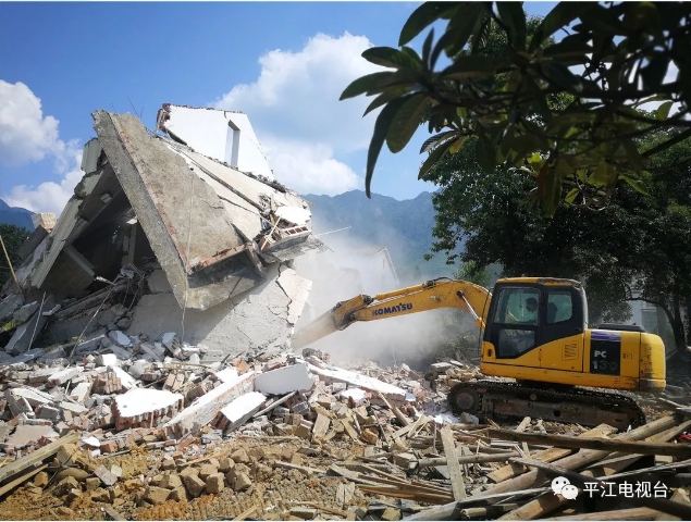 8月15日,随着几声轰隆巨响,一台铲车挥舞铁壁,福寿山镇百福村最后一栋移民户房屋被推倒。至此,平江抽水蓄能电站项目所有移民户征拆任务全面完成,实现彻底清零!