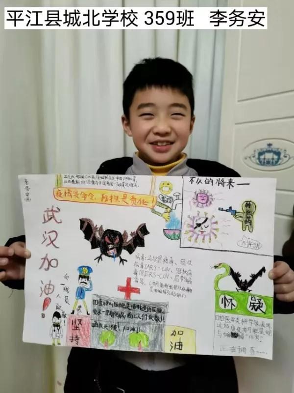 全民抗疫,小学生也在竭尽所能贡献自己的智慧和力量。在这场战“疫”中,城北学校四年级359班的小朋友通过作文、编程、诗歌、书画等形式大力宣传。该班班主任刘玲说:“要让学生直面疫情,用自己的心去感受大爱。”