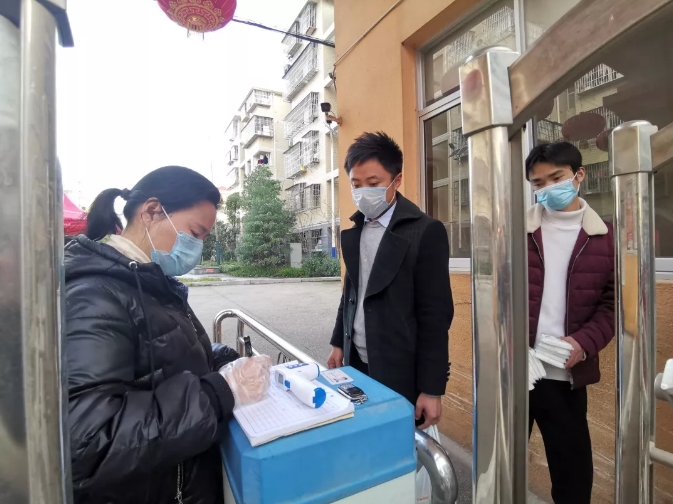 当天下午,家住万汇小区的周女士外出回家,在门口接受常规检查时,被体温枪测出是37.9度。在门口休息片刻后,体温依然偏高。在此值班的县住建局干部邓彬马上打电话反映给碧潭社区的联点干部余姿。10来分钟后,碧潭社区卫计专干带着一名医生上门,用更精准的水银体温计测量出周女士是正常的36.3度。