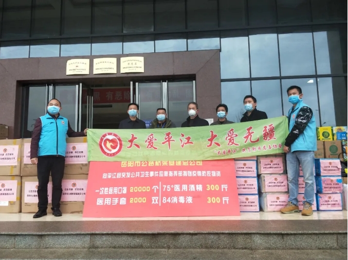 当日,岳阳市公路桥梁基建总公司也向平江县捐赠了一批防疫物资,其中,一次性口罩20000个、医用手套2000双,酒精和84消毒液各150公斤,价值52600元。岳阳路桥不仅充分发挥其海外项目部的优势完成了紧缺物资的采购,还从岳阳本地补充了部分物资。该公司工会主席尹光辉表示,“疫情当前,岳阳路桥希望能为平江防疫工作出一份力,奉献一片爱心。”(记者 袁小妹 通讯员 张脱冬 张香贵)