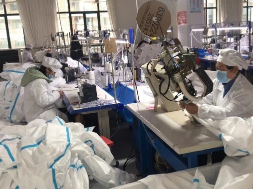 从生产普通服装到转型生产隔离服,两种工序和要求是不同的。生产线的扩能改造得到了多部门的配合和支持。隔离服讲究密闭性,为此,车间引进了2台压胶机,还特意从外地请来了专业师傅给每一个复岗员工培训,指导生产。
