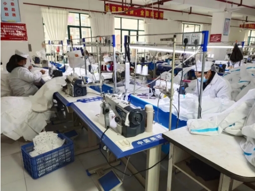 艺嵘服饰扶贫车间原来是从事来料加工的服装生产企业,带动当地30多名建档立卡贫困户实现家门口就业。春节过后,他们根据县防疫和生产需求,积极组织转产隔离服,并于3月2日正式复工。