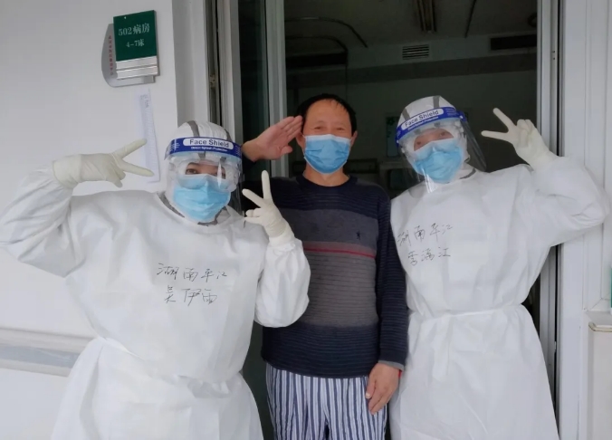 目前,沈大爷已经脱氧了,导尿管也拔除了,还能下床活动,他的情况日见日好。在金银潭医院北五病区,李满江他们与患者之间的暖心故事还在流淌……