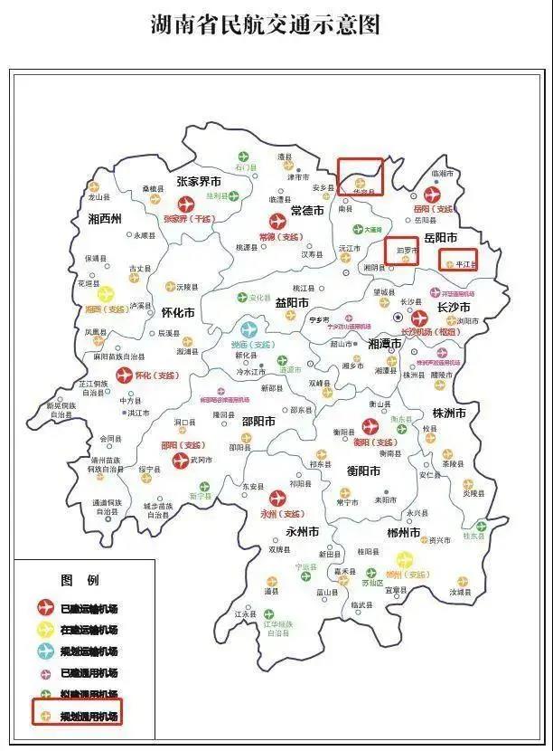 其实,早在今年4月,湖南人大网就公布了《关于湖南省重大交通项目实施情况的报告》和《湖南省“十四五”重大交通项目初步建议表》,并附上湖南省民航交通示意图,如下图所示,岳阳境内的华容县、平江县、汨罗市规划建设通用机场。此次,《 交通强国建设湖南省试点任务要点》明确提出,有序推进浏阳、平江、醴陵、攸县等通用机场建设,平江通用机场建设或先行一步。