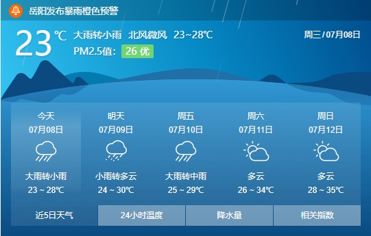 最新的雨情快报显示:7月7日12时至8日08时,平江县南部乡镇中到大雨,北部乡镇暴雨,局地大暴雨。累计降雨量超过100mm的站点3个,超过50mm的站点有13个,其中最大降水站点为上塔市134.7mm。最大小时雨强出现在上塔市55.4mm(18时45分-19时45分)。