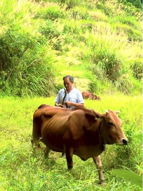 夕阳西下,天色渐暗,杨朋根吆喝着牲口回家。“脱贫也好,致富也好,没有其他巧,要吃得亏起。”杨朋根说。(何晶晶 方巍)