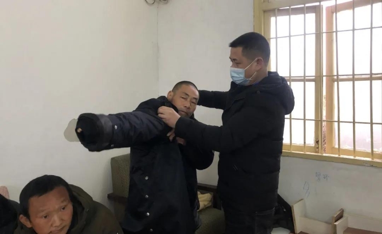 早上9点,在救助站门口,工作人员们正带着一批御寒物资,准备前往日间照料中心看望流浪人员。记者跟随前去,进门看到流浪人员们都围坐在火炉旁取暖,工作人员纷纷递上棉衣、棉被、鞋袜等,并细心为他们整理衣服,安排床铺被褥,不断嘱咐看护人员一定要细心照料。