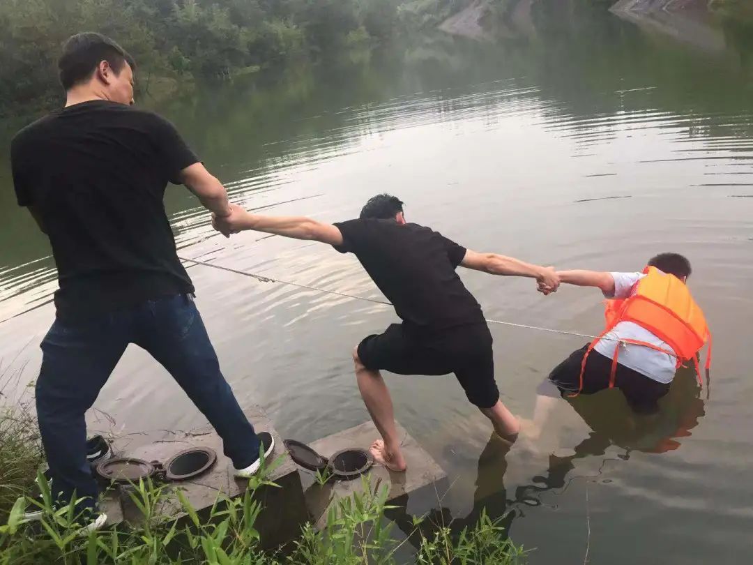 他们是第一批赶到现场的处险干部,大家手牵着手,立即开展第一步的抢险工作。