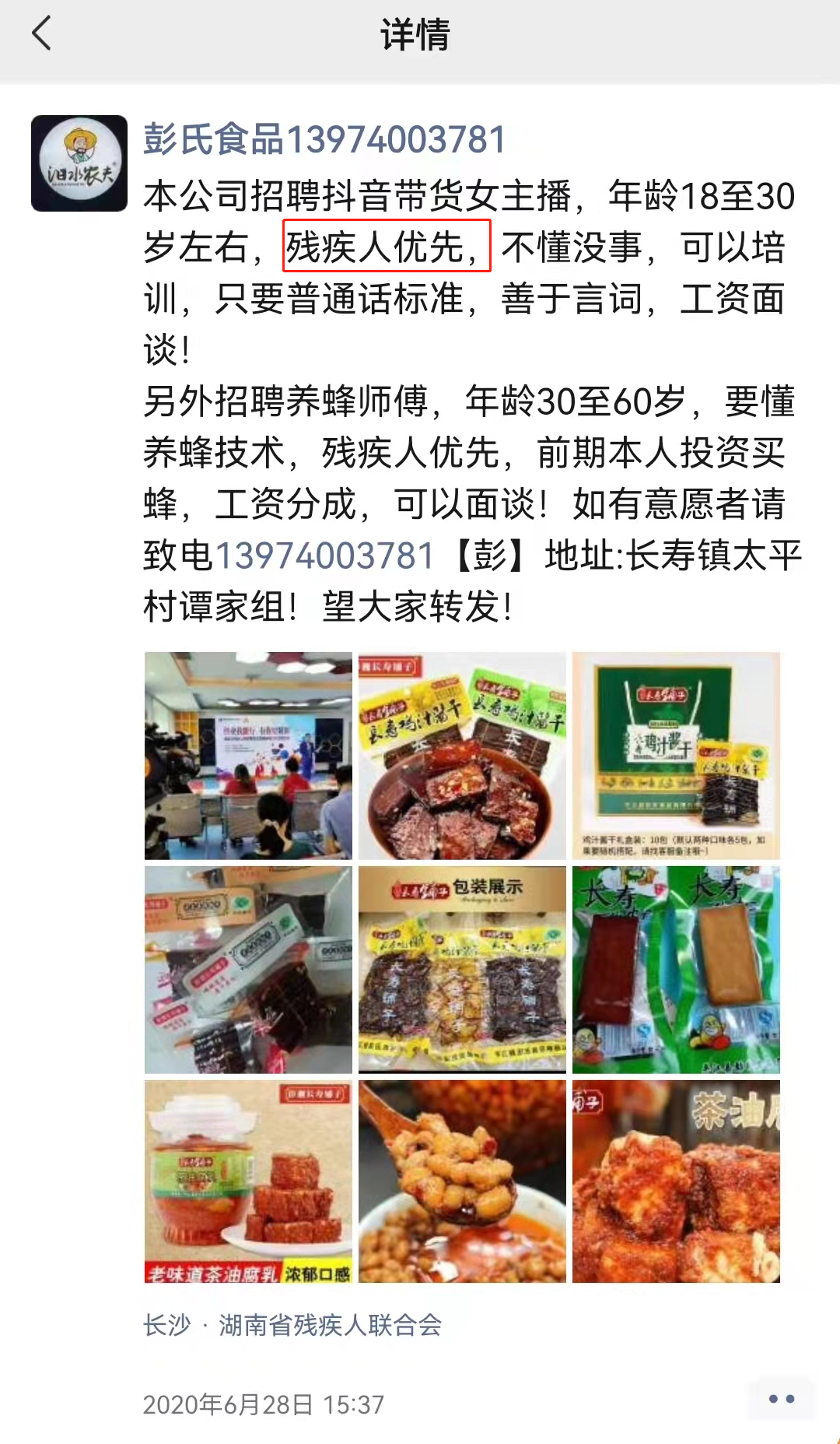 他虽身有残疾,但自强自立,努力做好自己的事业,公司生产如火如荼,酱干、腐乳等产品销往广东、广西、湖北、河北、河南等省份,年产值2000多万元,解决民工就业300多人次。他做好自己事业的同时,还心存善念,努力帮扶他人。深感自己是残疾人难找工作的经历,公司特意放宽应聘条件,为残疾人解决就业难的问题。“残疾人优先”是他招聘广告上常见的话。公司自1998年创立以来,为残疾人解决就业150多人次。