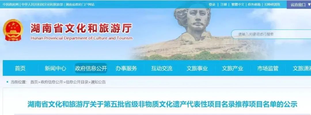 近日,湖南省文化和旅游厅公示第五批省级非物质文化遗产代表性项目名录推荐项目名单。