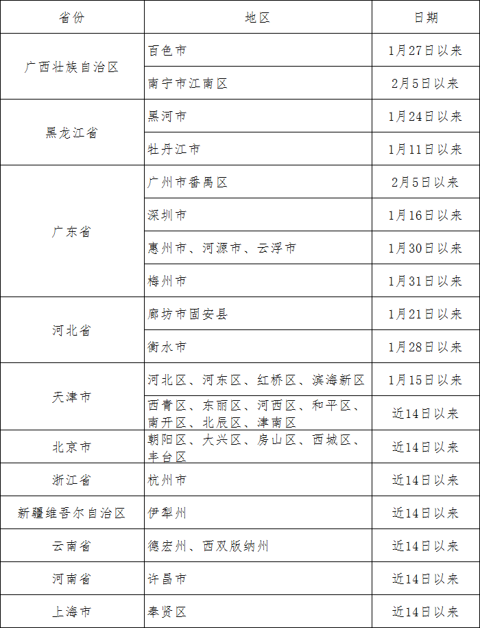 2月6日起,广西百色实施全市范围的交通管制,原则上车辆和人员不进不出,百色市内各县(市、区)之间、各县(市、区)内各乡(镇)之间不进不出,各县(市、区)、各乡(镇)内部严格执行人员管控,非必要不流动。