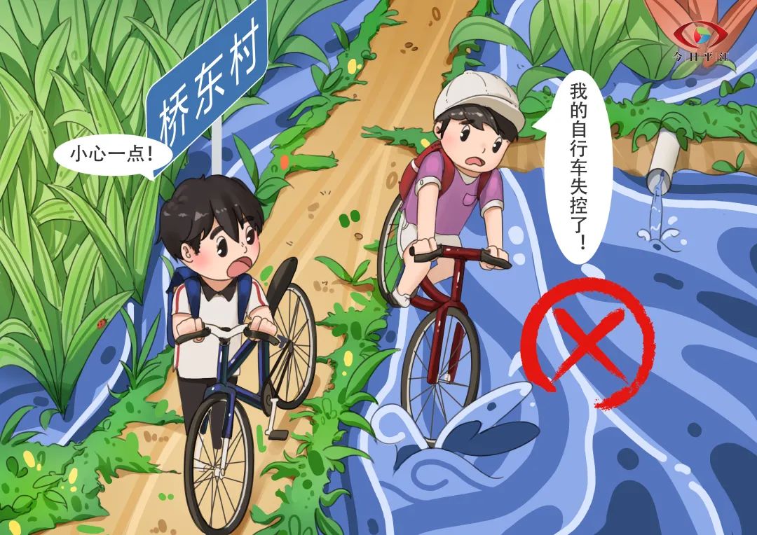 常有孩子在水边骑自行车、电动车,遇到路窄、路滑溺水的案例。老师、家长应向孩子传达其危险性,防止车辆失控,导致溺水意外发生。