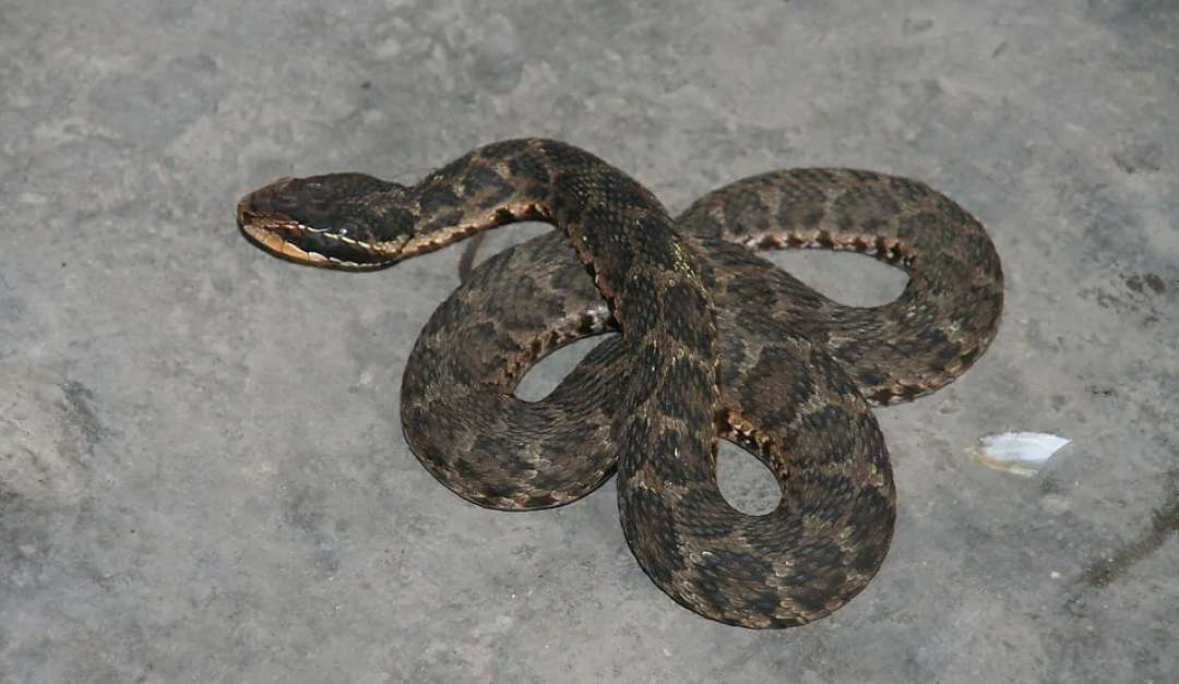 蝮蛇是平江县咬伤人数最多的一种中性混合型毒的蛇,每年蛇伤的60%是蝮蛇咬伤,危害面积极广,伤亡人数最多,它体积小,人们很难发现。